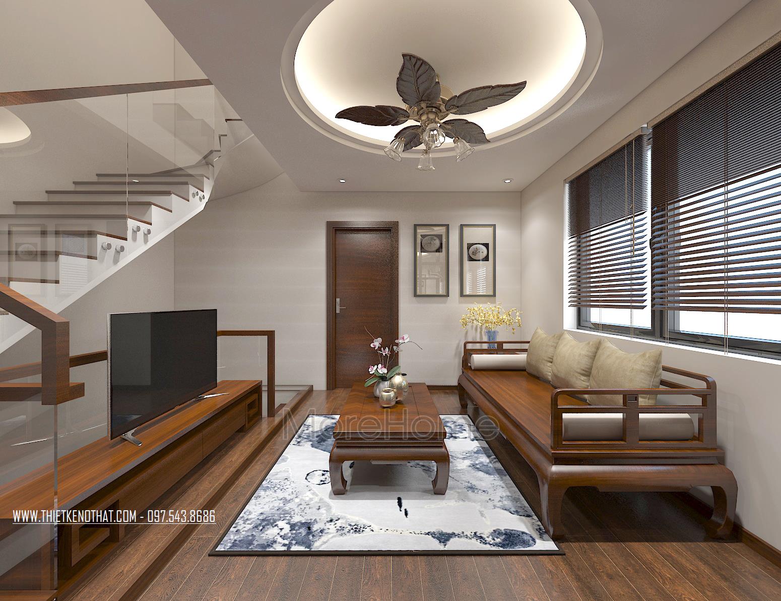 Các bạn có muốn sở hữu một không gian thiết kế nội thất hiện đại, tiện nghi với cầu thang gỗ làm điểm nhấn không? Xin mời vui lòng liên hệ MOREHOME qua SĐT: 0975438686 để được tư vấn cụ thể nhé.