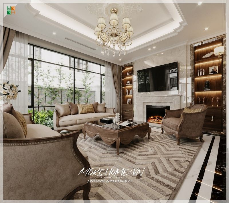 Mẫu thiết kế nội thất chung cư đẹp theo phong cách tân cổ điển sang trọng, đẳng cấp.