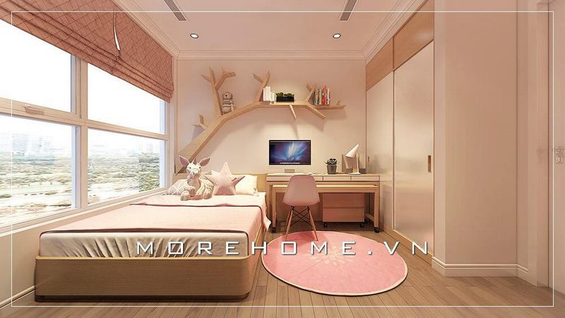 Nội thất phòng ngủ bé gái gỗ công nghiệp được gia chủ lựa chọn ở không gian này, vẫn mang cảm giác thoải mái và ấm cúng