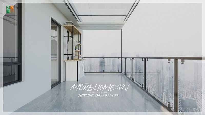 Lan can vách kính cường lực giúp cho không gian logia thoáng đãng chiêm ngưỡng được toàn cảnh trên cao