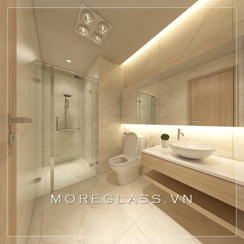 Mẫu thiết kế phòng tắm cho nhà phố đẹp với thiết bị vệ sinh cùng nội thất đơn giản, tiện nghi.